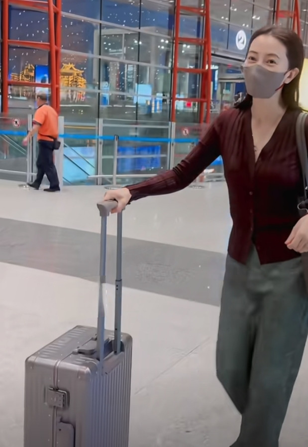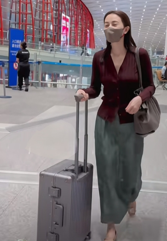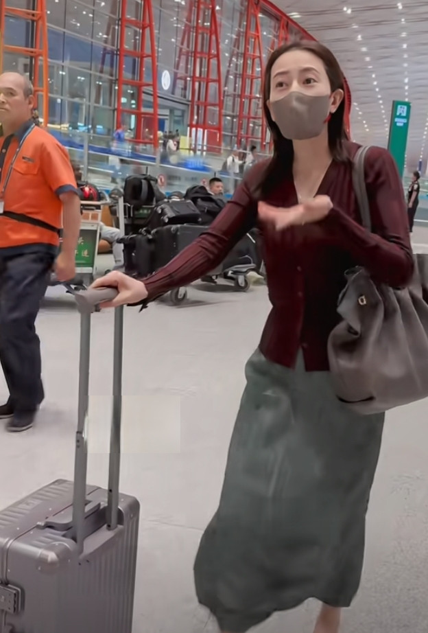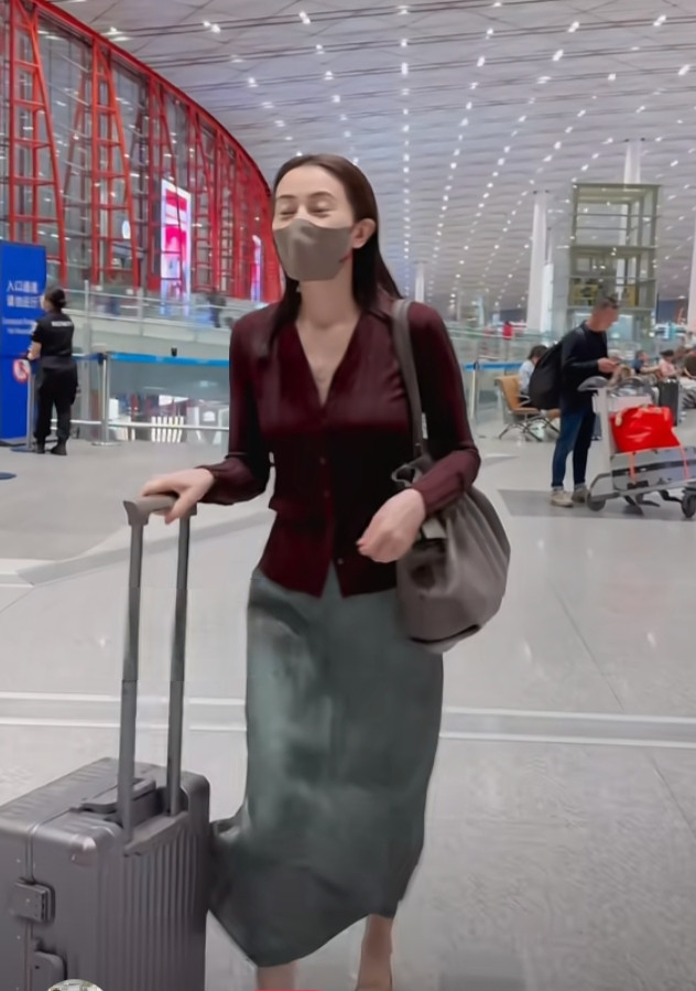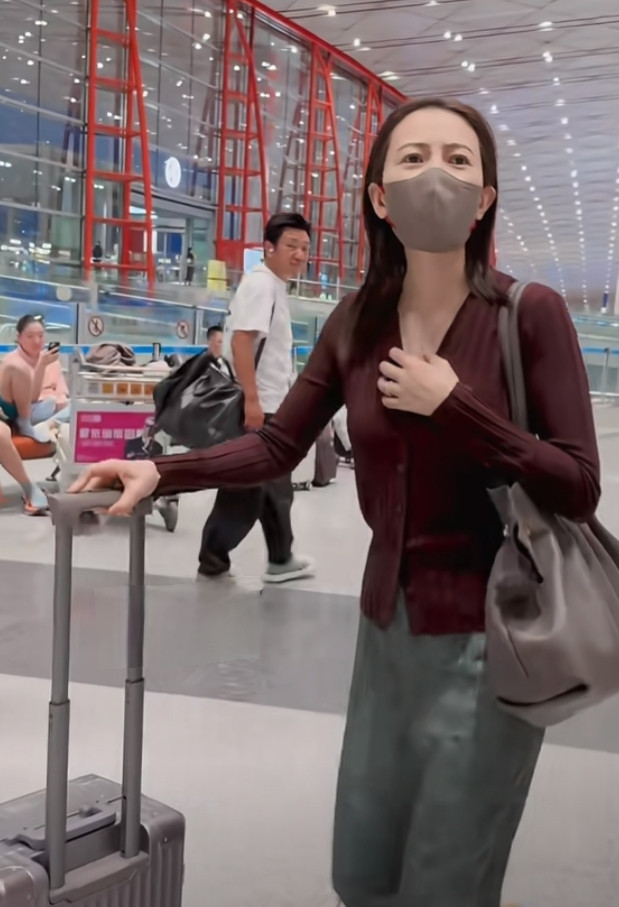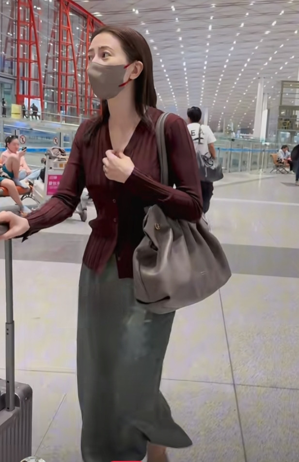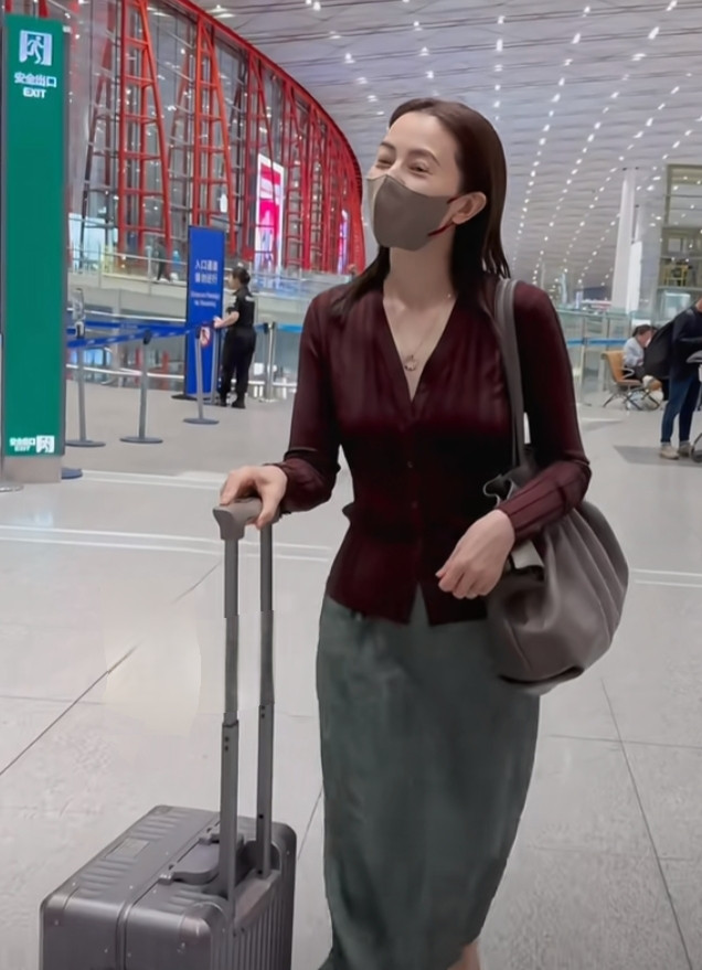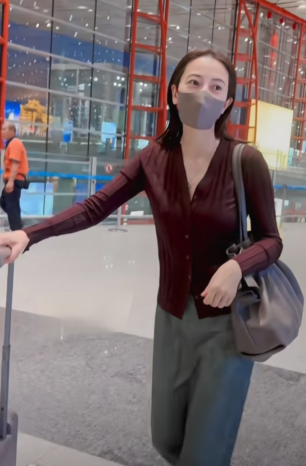 高圆圆现身机场, 酒红针织开衫配墨绿长裙, 气质温柔又高级